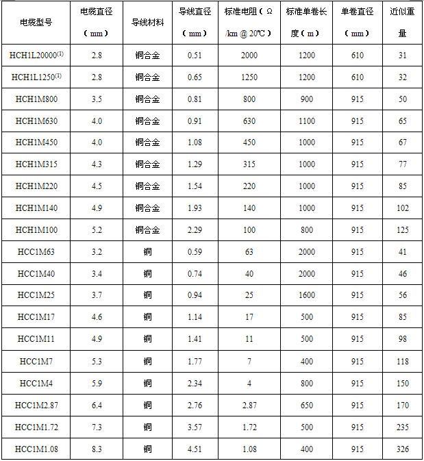 對于HDPE,電纜外徑增加1.8mm。根據(jù)要求可提供FEP詳細(xì)資料。