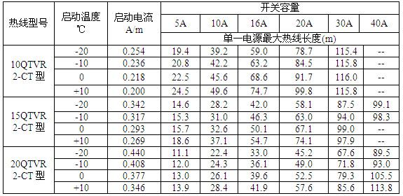 六、QTV2-CT伴熱線工作曲線圖(電源220Vac)